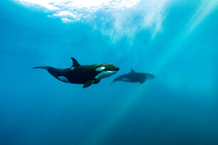 The aim was to document the orcas hunting rays. However, it was extremely difficult to find the orcas. We spent hours at sea every day, but only caught a brief glimpse of the orcas twice.